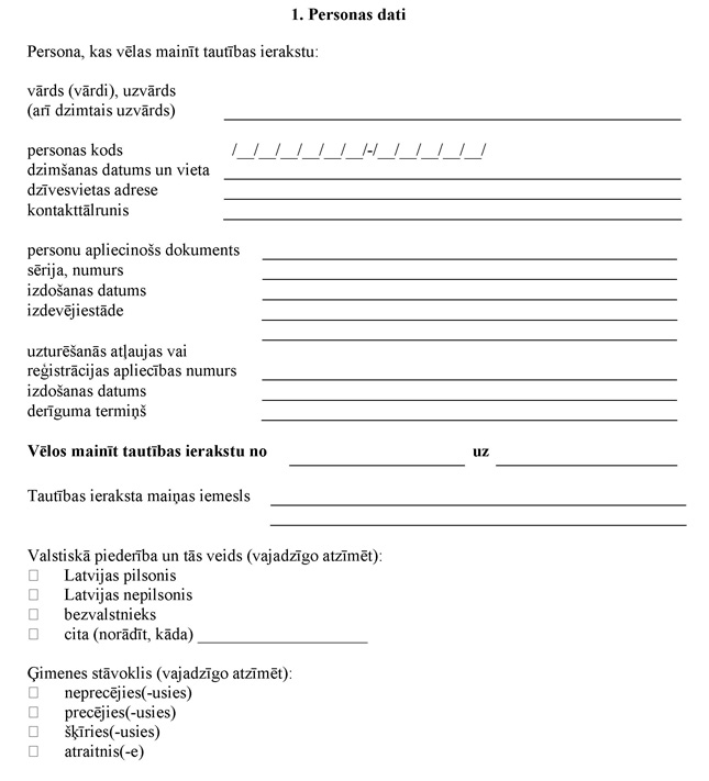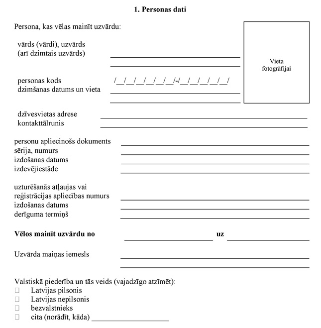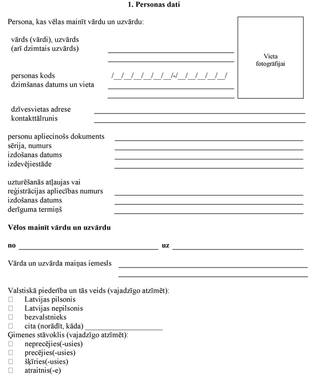 Grozījumi Ministru kabineta 2009.gada 22.septembra noteikumos Nr.1079 "Noteikumi par vārda, uzvārda un tautības ieraksta maiņas iesniegumu veidlapu paraugiem"