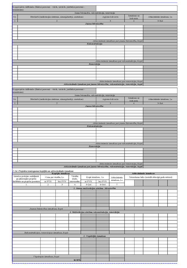 "23. Ja tiek īstenots kopprojekts, ieguldījums šo noteikumu 6.1., 6.2. un 6.3.apakšpunktā minēto pretendentu jaunbūvējamās, rekonstruējamās vai renovējamās meliorācijas sistēmās ir vismaz 30 procentu apmērā no projekta kopējām attiecināmajām izmaksām."