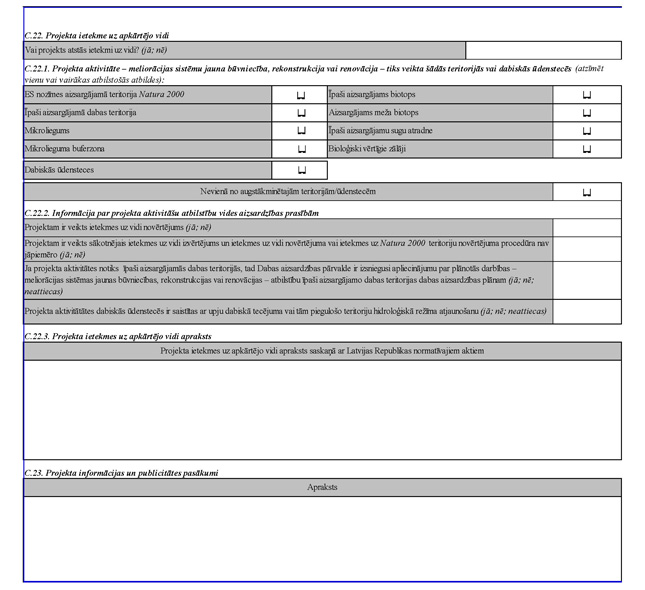 "29.11. ja projekta iesnieguma iesniegšanas dienā nekustamais īpašums nav pretendenta īpašumā, – tiesisko valdījumu apliecinošus dokumentus par zemi, uz kuras notiks projektā paredzētie darbi. Ja tiek īstenots kopprojekts, minētos dokumentus iesniedz par visu kopprojekta dalībnieku tiesiskajā valdījumā esošo zemi, uz kuras notiks projektā paredzētie darbi."