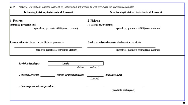"29.1. projekta iesniegumu (2.pielikums) divos eksemplāros (ja projekta iesniegumu neiesniedz elektroniski). Lauku atbalsta dienests izdara atzīmi par projekta iesnieguma saņemšanu un vienu projekta iesnieguma eksemplāru atdod atbalsta pretendentam;".