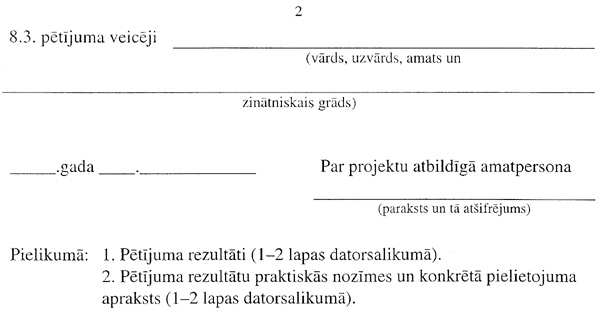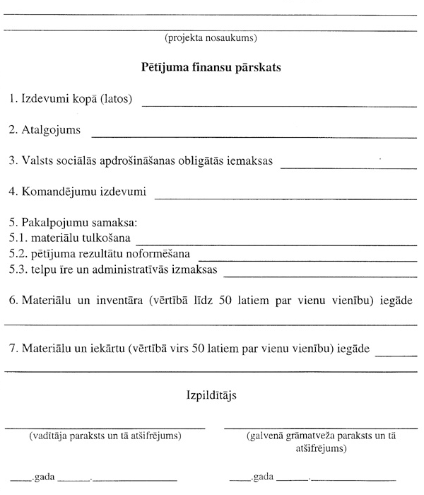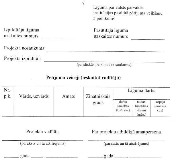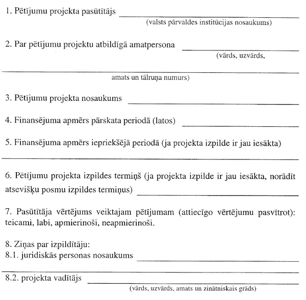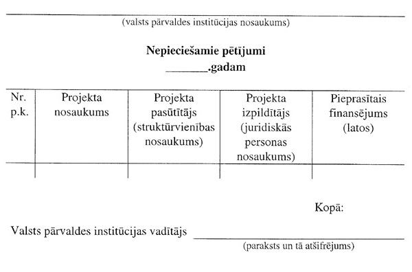 par valsts pārvaldes institūcijas pasūtīto pētījumu projektu
