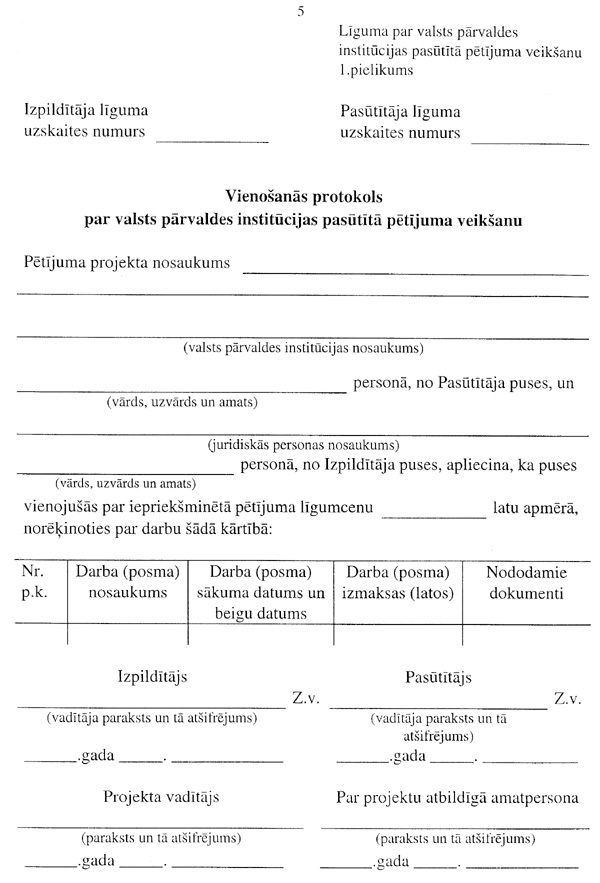 5. Institūcija nosaka pasūtāmo pētījumu uzdevumus, kuros izvirza konkrētus jautājumus un problēmas. Pasūtījumu izpildītāji sagatavo attiecīgus projektus, kurus īstenojot tiek sniegtas atbildes uz izvirzītajiem jautājumiem un problēmu risinājumi. .