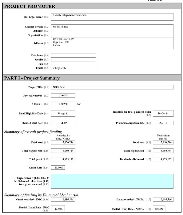 The purpose of the Fund is to provide financial support for NGO activities in democracy and civil society development fields, strengthen the capacity of NGOs supporting priorities in the EEA and the Norwegian Financial Mechanism and support NGO initiated projects in the priorities of the EEA and Norwegian Financial Mechanisms, with the overall objective of strengthening civil society in Latvia. Reference is made to the application, dated 27 July 2006, and to correspondence with the Focal point 8 September 2006 and 21 September 2006.