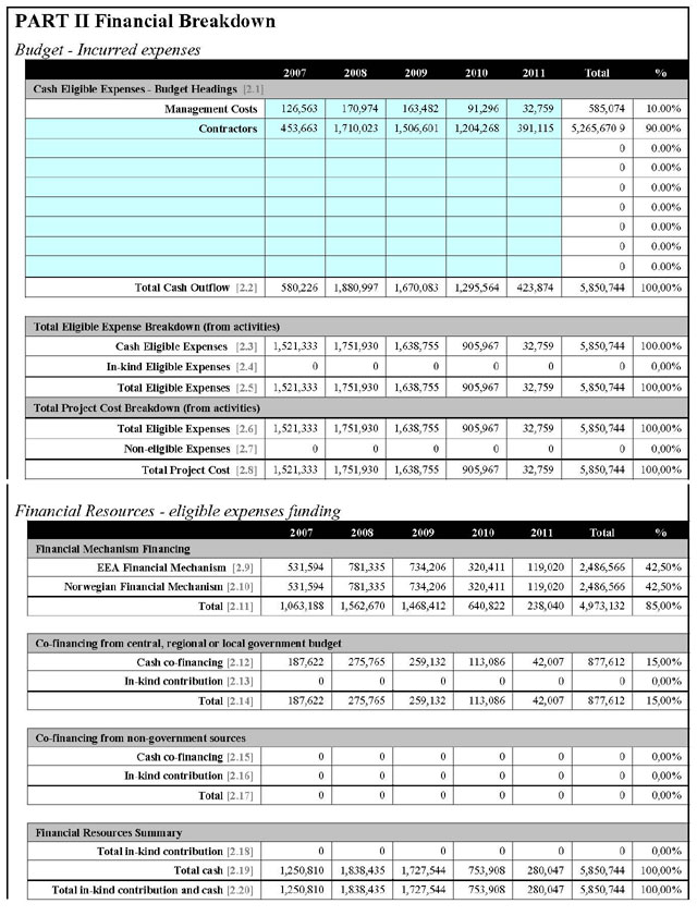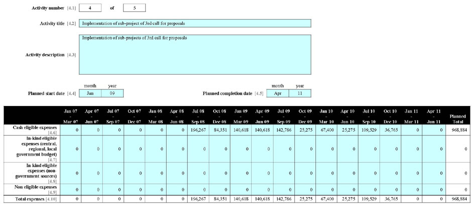 Total indicative amount that is available within the framework of this program is 40% of total grant amount, or 2,106,268 EUR. The Intermediary shall organise four calls for measure 3. The division between the calls are as follows; 30% for the first call in 2007, 30 % for the second call in 2007, 20 % for the call in 2008 and 20 % for the call in 2009.