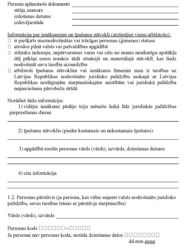 Izdarīt Ministru kabineta 2009.gada 21.jūlija noteikumos Nr.805 "Noteikumi par valsts nodrošinātās juridiskās palīdzības pieprasījuma veidlapas paraugu" (Latvijas Vēstnesis, 2009, 121.nr.) grozījumu un izteikt pielikumu šādā redakcijā: