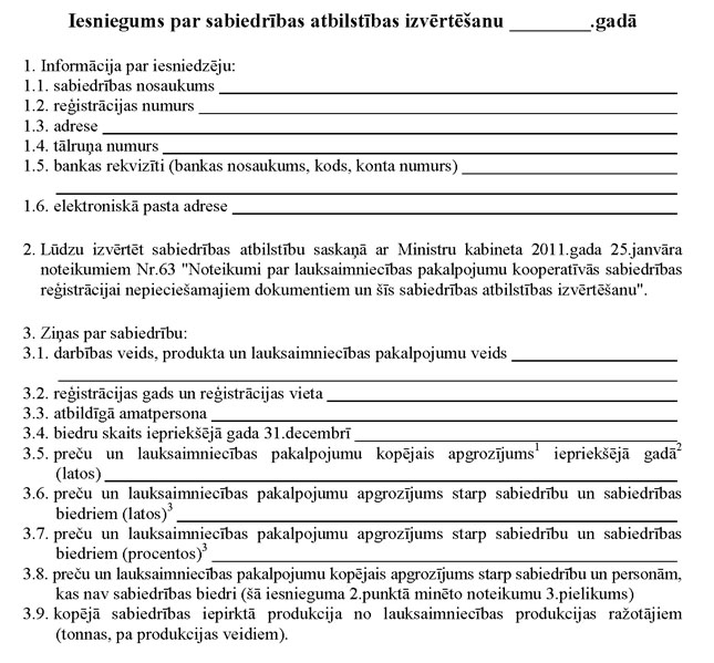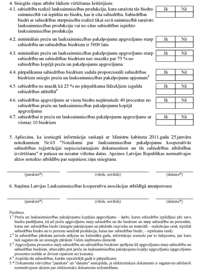 1. * Dati, kas norādīti Ministru kabineta 2011.gada 25.janvāra noteikumu Nr.63 "Noteikumi par lauksaimniecības pakalpojumu kooperatīvās sabiedrības reģistrācijai nepieciešamajiem dokumentiem un šīs sabiedrības atbilstības izvērtēšanu" 1.pielikuma 3.5.apakšpunktā.