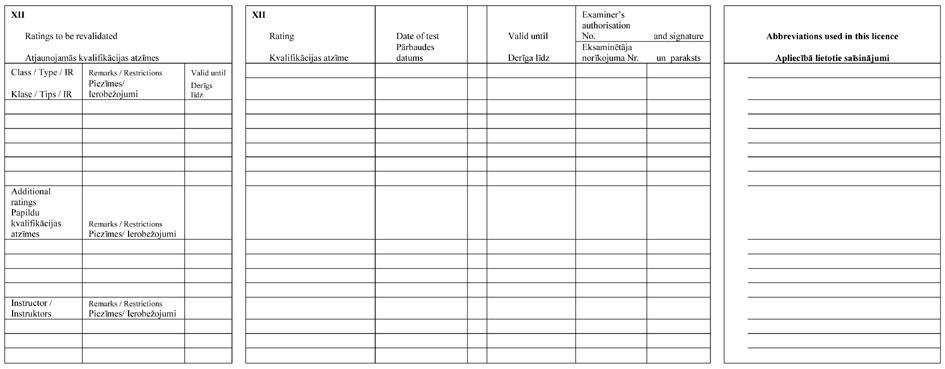 12. Amatierpilots un privātpilots, kurš ieguvis kvalifikācijas atzīmi diviem dažādiem gaisa kuģa tipiem vienā kategorijā vai klasē, nākamo gaisa kuģa tipu šajā kategorijā vai klasē apgūst, veicot nepieciešamos iepazīšanās lidojumus kopā ar lidojumu instruktoru.