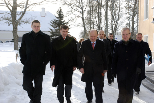 Piektdien, 11.februārī, Latvijas Ministru prezidents Valdis Dombrovskis, Igaunijas premjerministrs Andruss Ansips un Lietuvas premjerministrs Andrjus Kubiļus piedalījās neformālā Baltijas Ministru padomes sanāksmē, kurai pievienojās Eiropas Komisijas ekonomikas un monetāro lietu komisārs Olli Rēns (attēlā pa labi)