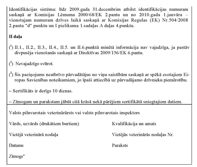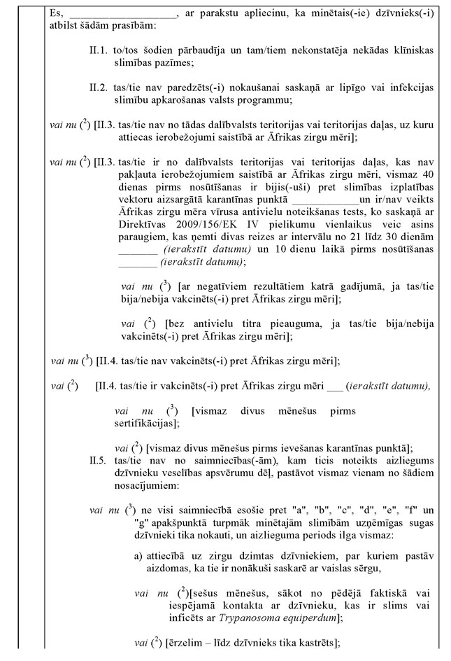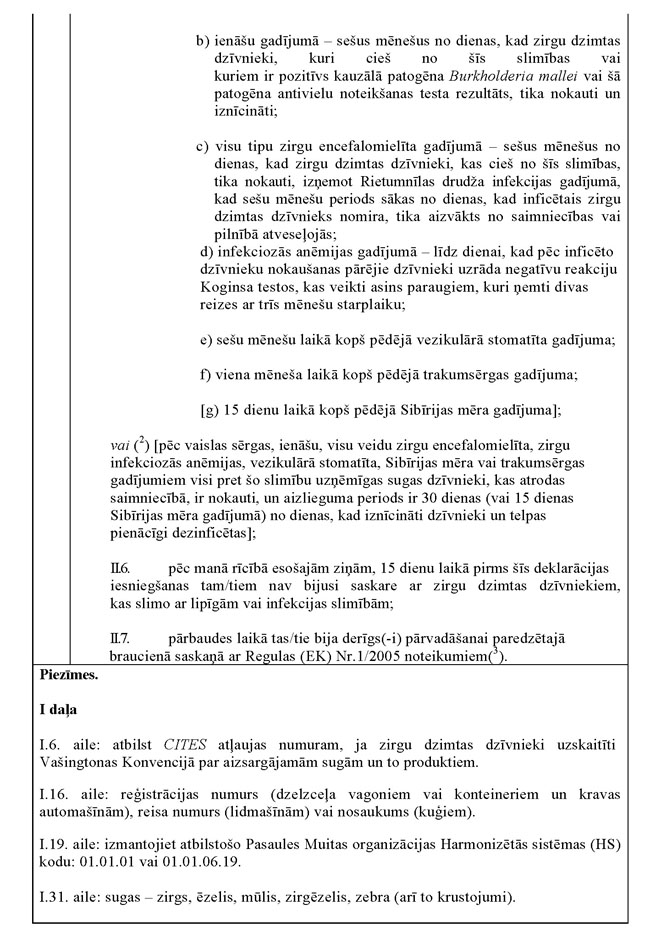 "29.4. tas apliecina dzīvnieku atbilstību normatīvajos aktos par dzīvnieku veselības prasībām attiecībā uz zirgu dzimtas dzīvnieku pārvadāšanu un šajos noteikumos noteiktajām prasībām;".