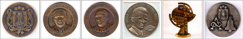 Lielā zinātniskā goda apliecinājumi: Latvijas Zinātņu akadēmijas Lielā medaļa, akadēmiķu ķīmiķu G.Vanaga un S.Hillera, inženiera V.Capa un enerģētiķa A.Vītola balvas, kā arī Baltijas zinātņu akadēmiju kopbalva |