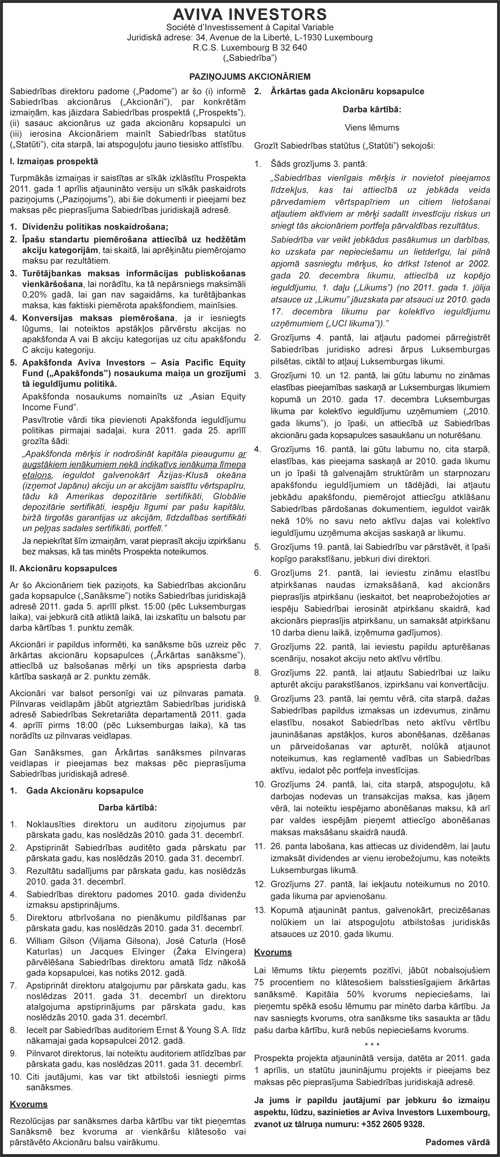 Paziņojumi akcionāriem, dalībniekiem, biedriem