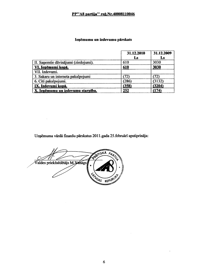 Bilances pārskats 2011.gada 28. februārī