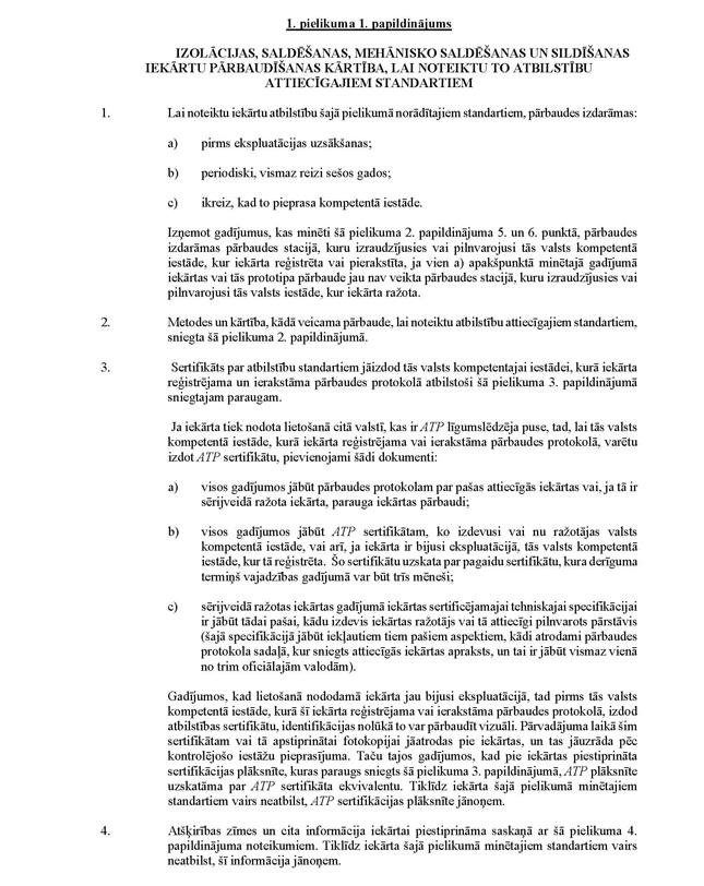 Ārlietu ministrija informē, ka 2011.gada 2.janvārī stājās spēkā 2008.gada 14. – 17.oktobrī pieņemtie grozījumi 1970.gada 1.septembra Nolīguma par ātri bojājošos pārtikas produktu starptautiskajiem pārvadājumiem un par speciālām iekārtām, kas izmantojamas šajos pārvadājumos (ATP), 1.pielikumā.