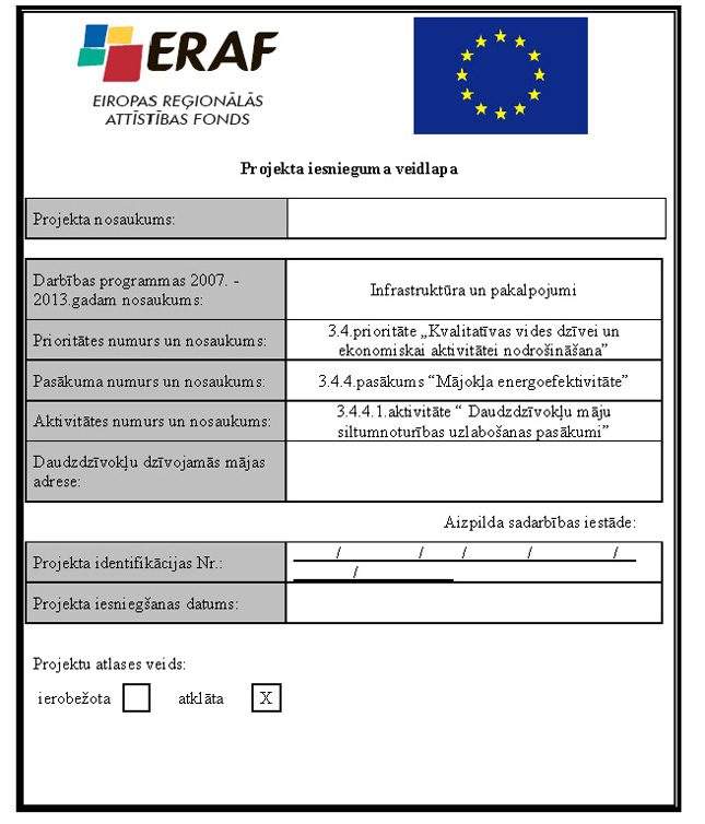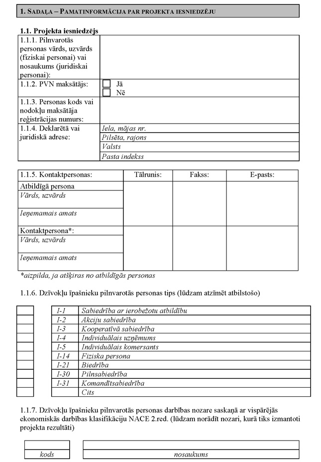 Projekta iesnieguma veidlapa ir pilnībā aizpildīta