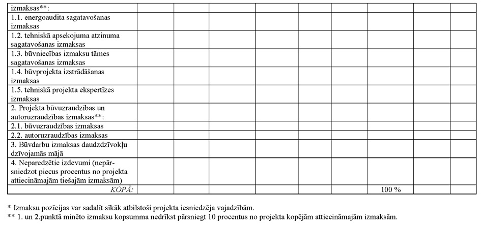 18.1. energoaudita, tehniskās apsekošanas, būvniecības izmaksu tāmes, būvprojekta vai vienkāršotās renovācijas dokumentācijas izstrādāšanas izmaksas un tehniskā projekta ekspertīzes izmaksas;