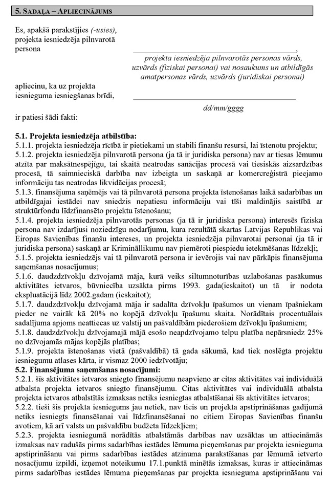Projekta iesnieguma oriģinālam vai normatīvajos aktos noteiktā kārtībā apliecinātai tā kopijai ir dokumenta juridiskais spēks