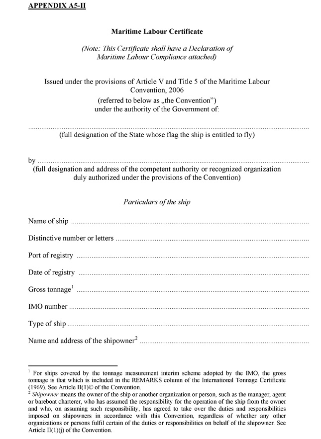Paziņojums par jūras darbaspēka atbilstību. II daļa
