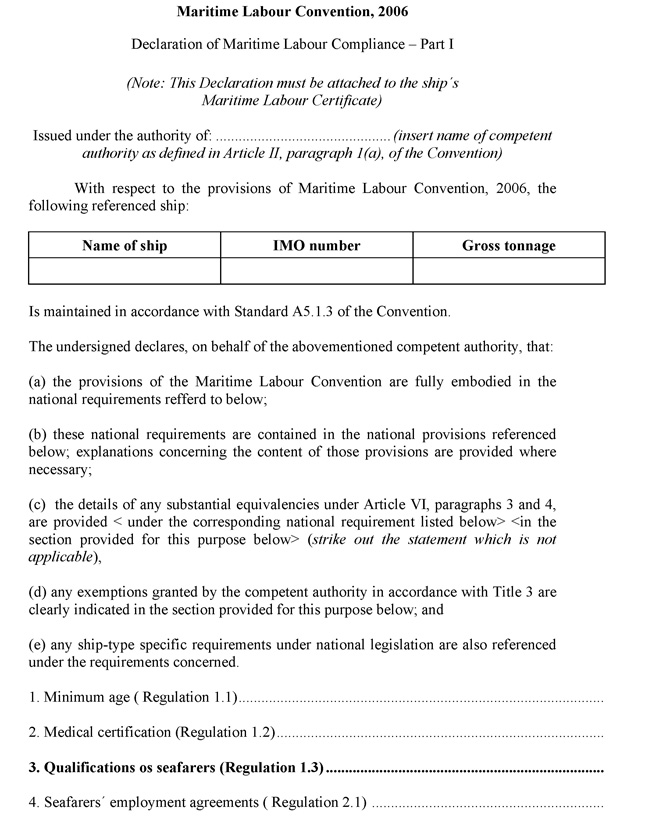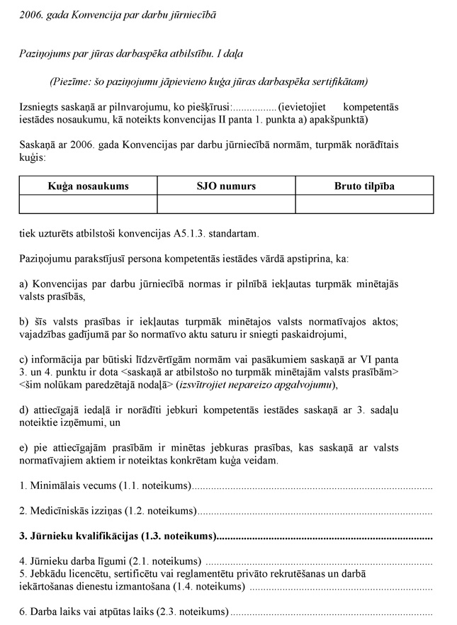 Paziņojums par jūras darbaspēka atbilstību. I daļa