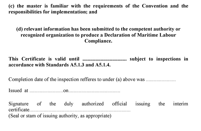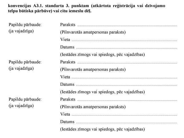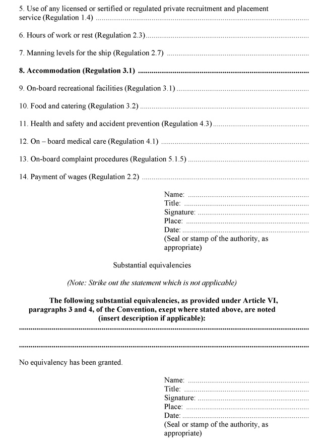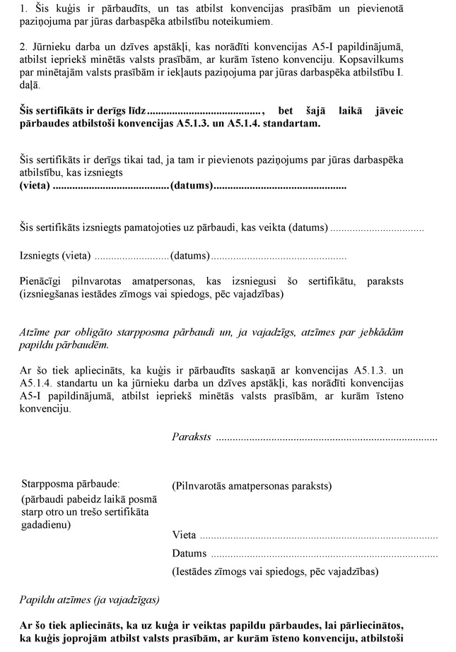 (Piezīme: šo paziņojumu jāpievieno kuģa jūras darbaspēka sertifikātam)