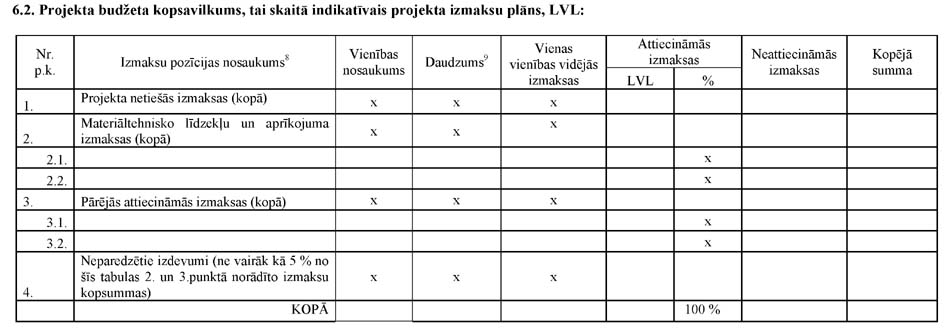 | 15. | Projekta iesniegumā paredzētās izmaksas ir pamatotas un nepieciešamas projekta mērķu un rezultātu sasniegšanai un aktivitāšu īstenošanai |