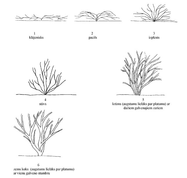 | krūms (augstāks nekā plats) ar dažiem galvenajiem zariem |