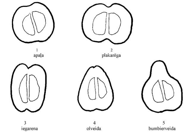 11. Augļa forma vertikālā griezumā saskaņā ar šā pielikuma I nodaļas 17.punktā minēto pazīmi ir šāda: