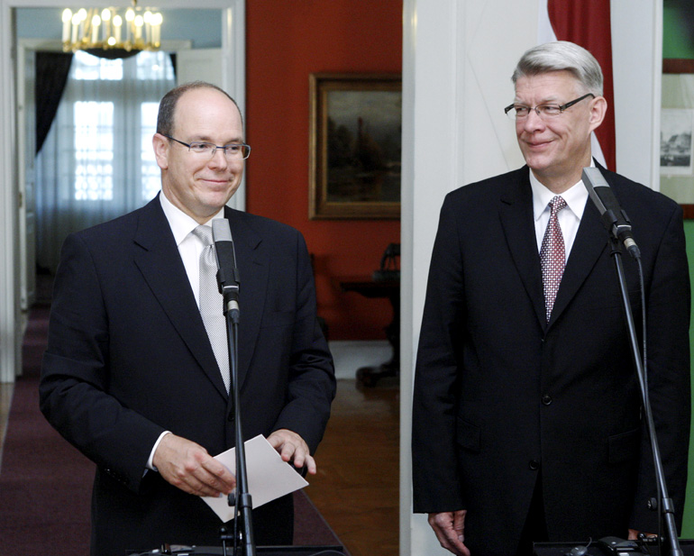 V.E. Latvijas Valsts prezidents Valdis Zatlers un V.A. Monako firsts Alberts II, Bo marķīzs — masu medijiem: