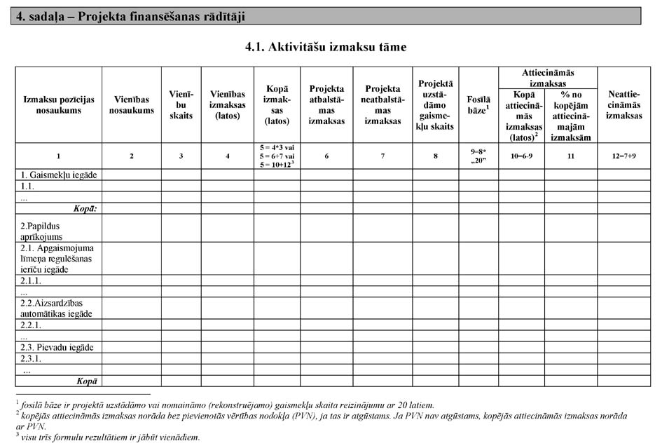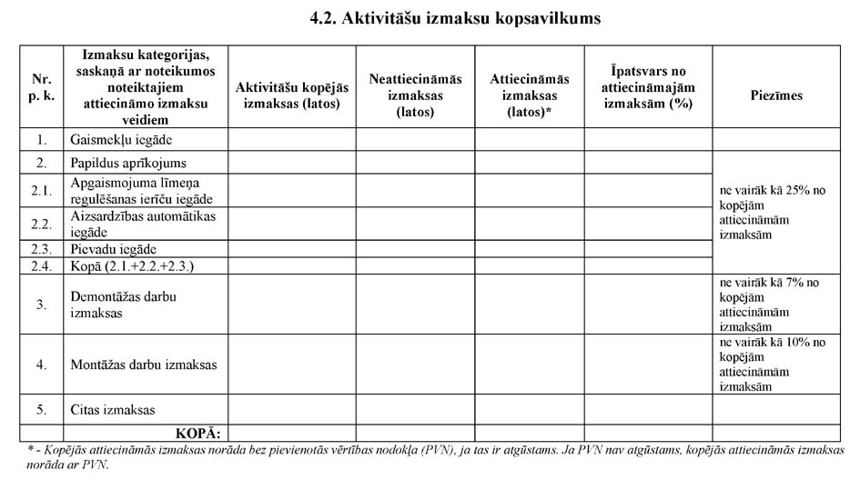 IV. Konkursa ietvaros atbalstāmās projekta aktivitātes un izmaksas, kā arī attiecināmās un neattiecināmās izmaksas