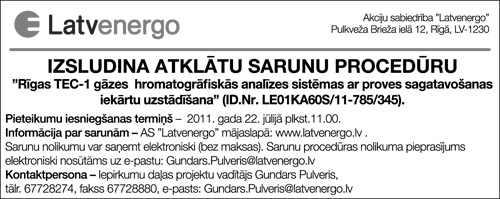 Piedāvājumu iesniegšanas pēdējais termiņš: 2011.gada 15.jūlijs plkst. 12.