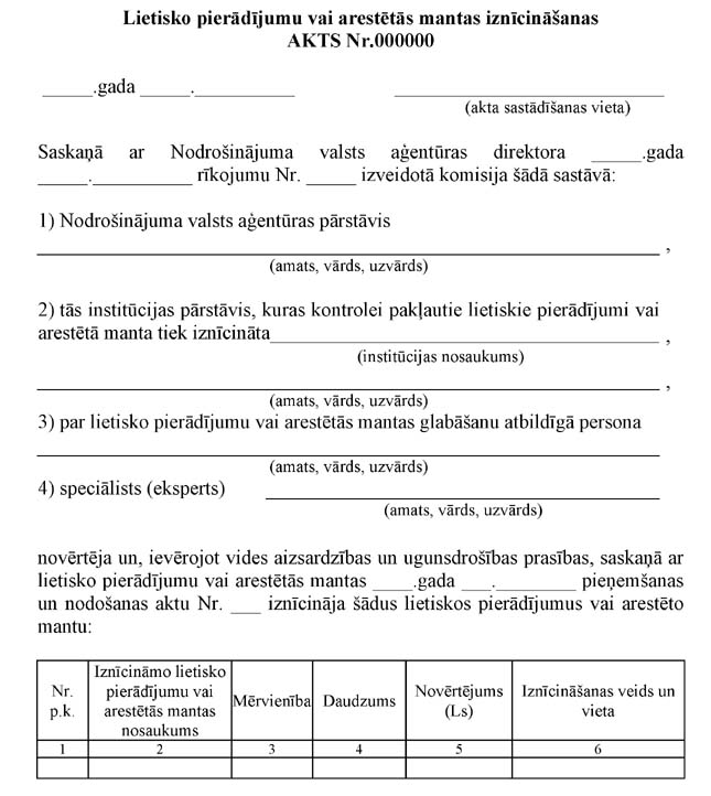 Iznīcināšanas akta numurs un datums |