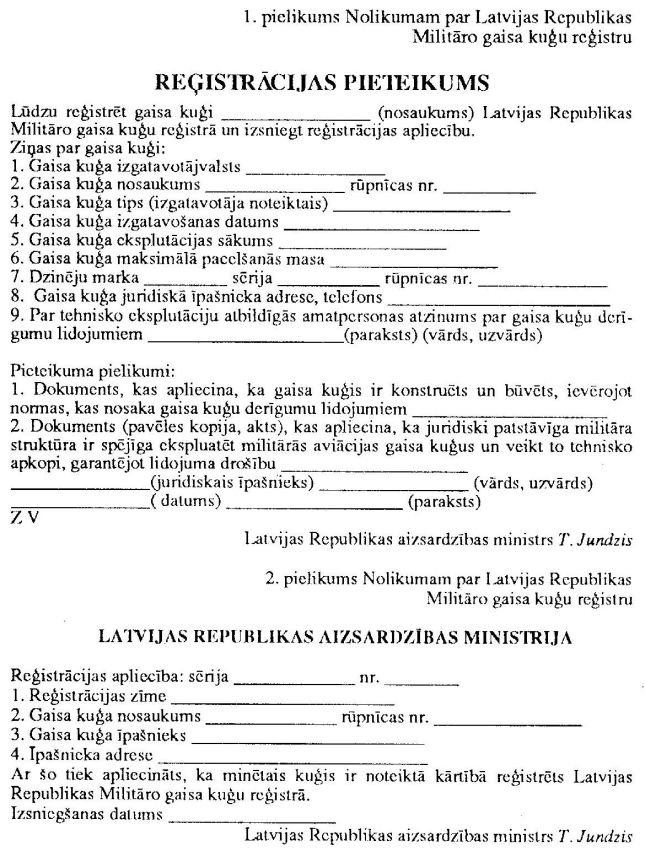 Par Latvijas Republikas Militāro gaisa kuģu reģistru
