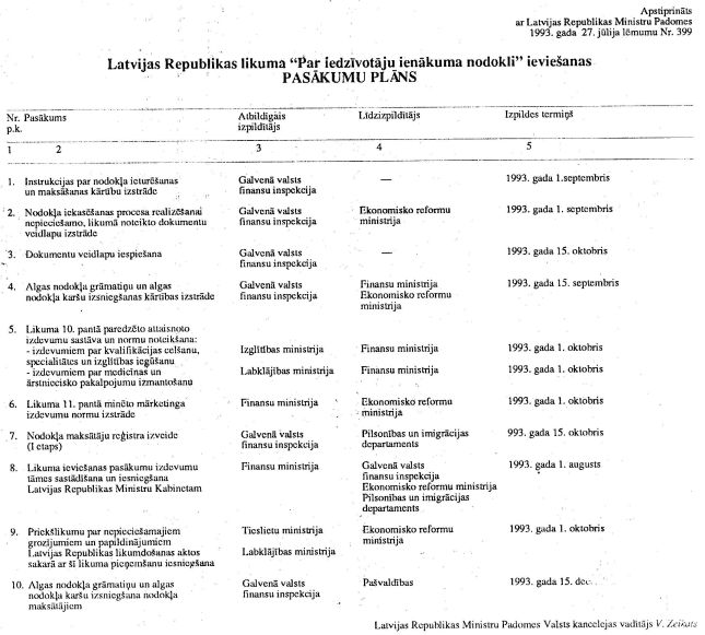Saskaņā ar Latvijas Republikas Augstākās Padomes 1993. gada 12. maija lēmuma "Par Latvijas Republikas likuma "Par iedzīvotāju ienākuma nodokli" spēkā stāšanās kārtību" 3. punktu Latvijas Republikas Ministru Padome n o l e m j :