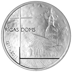 Latvijas Bankas jubilejas monētas ir miniatūri mākslas darbi, ko velta Latvijas vērtībām – notikumiem, panākumiem, cilvēkiem, mūsu kultūras zīmēm. 2011.gada 25.jūlijā apritēja 800 gadu, kopš likts pamatakmens Rīgas Domam, kas ir Latvijas svētvieta un Dieva klātbūtnes zīme mūsu zemē.