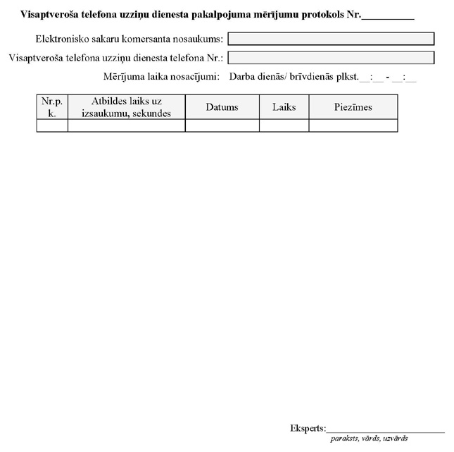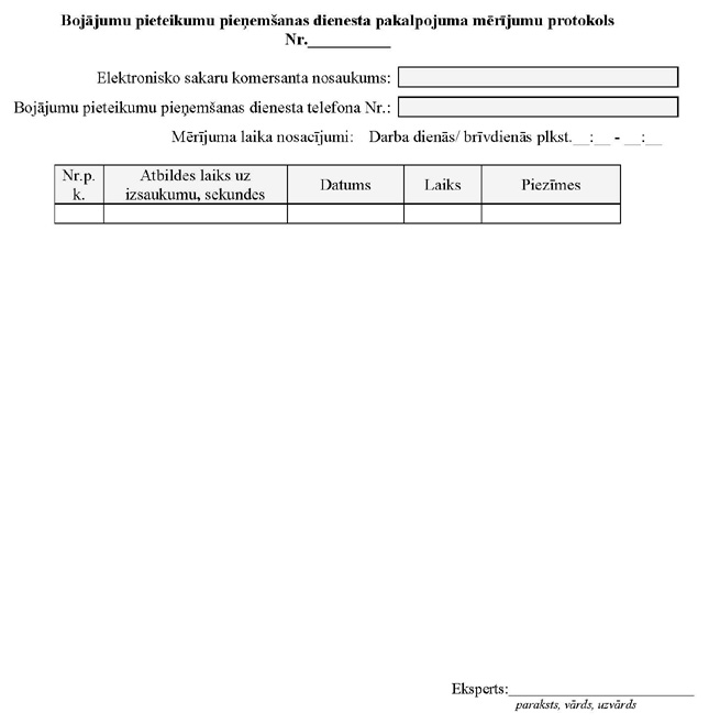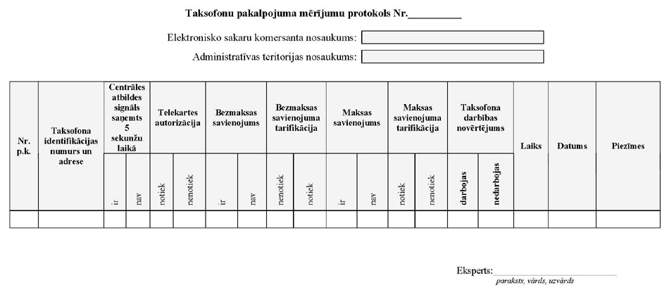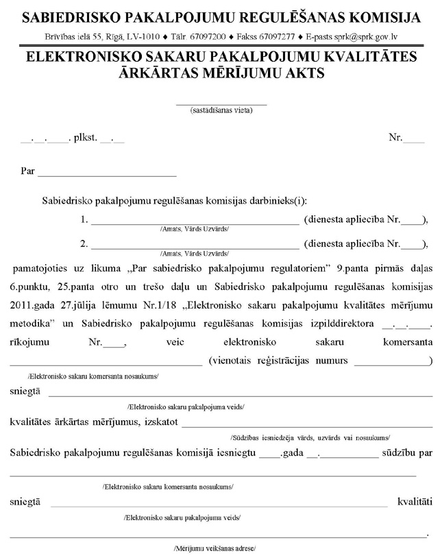 96. Beidzot ārkārtas mērījumus, eksperts sastāda un paraksta Elektronisko sakaru pakalpojumu kvalitātes ārkārtas mērījumu aktu (5.pielikums) trīs eksemplāros, no kuriem viens paliek Regulatoram, otrs sūdzības iesniedzējam, bet trešais komersantam. Interneta pakalpojuma kvalitātes kontroles servera apkopotos ārkārtas mērījumu rezultātus eksperts izdrukā un pievieno Elektronisko sakaru pakalpojumu kvalitātes ārkārtas mērījumu aktam kā tā neatņemamu sastāvdaļu.