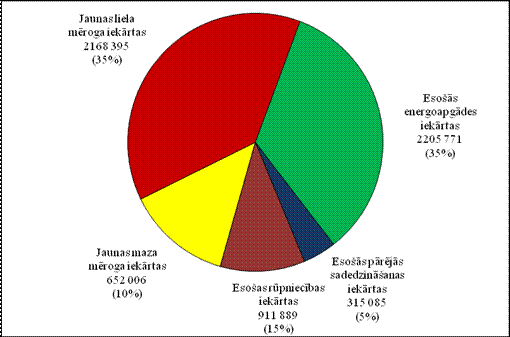 Kopējais emisijas kvotu apjoms gadā esošajām un jaunajām iekārtām5 tika noteikts, ņemot vērā Eiropas Komisijas 2006.gada 29.novembra Lēmumu par valsts siltumnīcefekta gāzu emisijas kvotu sadales plānu, ko paziņojusi Latvija saskaņā ar Eiropas Parlamenta un Padomes Direktīvu 2003/87/EK, kā arī izmantojot šim lēmumam pievienotajā Eiropas Komisijas paziņojumā aprakstīto metodiku. Minētajā metodikā ieviestas atsevišķas izmaiņas, precizējot koriģēto 2005.gada verificēto emisijas datu aprēķinu, kā arī pieskaitot prognozētās papildus emisijas no atsevišķiem valsts mēroga investīciju projektiem enerģētikas un rūpniecības nozarēs, kas netiek adekvāti atspoguļotas ar metodikā ietverto IKP izaugsmes faktoru (turpmāk – liela mēroga jaunās iekārtas).