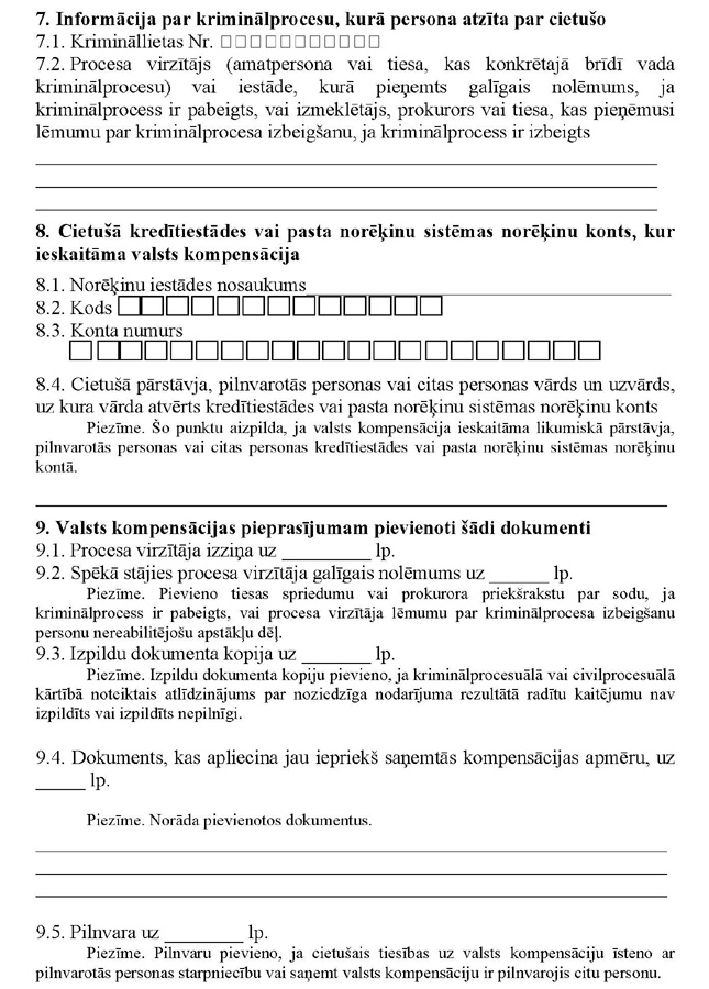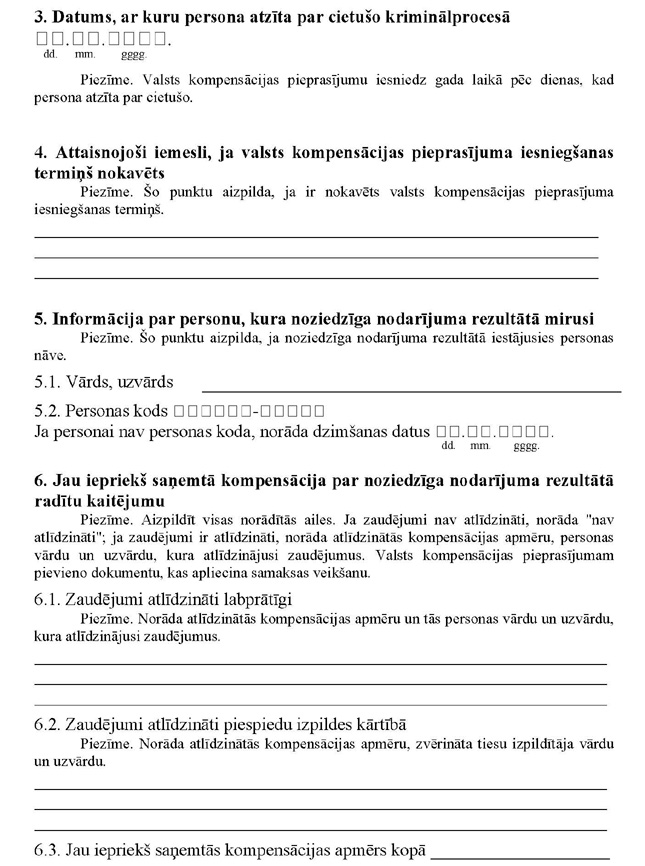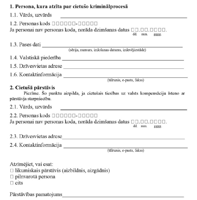 Cietušā valsts kompensācijas pieprasījuma paraugs