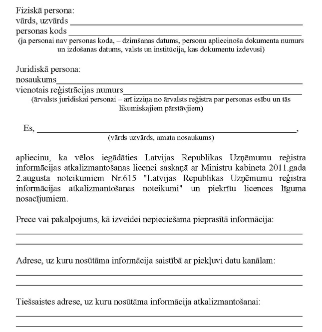 Pieteikums informācijas atkalizmantošanas licences saņemšanai