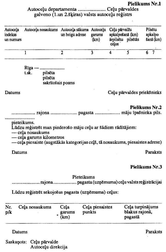 7. Pagastu, uzņēmumu un māju ceļu īpašnieki savā reģistrācijas pieteikumā rajona Ceļu pārvaldei norāda: