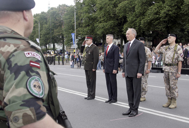 Sestdien, 13.augustā, atzīmējot Zemessardzes 20.gadadienu, Rīgā notika pasākumi, kuros piedalījās vairāk nekā 1000 zemessargu un karavīru no Zemessardzes vienībām visā Latvijā. Pasākumos piedalījās Latvijas Valsts prezidents, valsts bruņotā spēka augstākais vadonis Andris Bērziņš, aizsardzības ministrs Artis Pabriks, NBS komandieris ģenerālmajors Raimonds Graube, Zemessardzes pirmie komandieri, Aizsardzības ministrijas pārstāvji, NBS spēku veidu un vienību komandieri, ārvalstu militārie atašeji, kā arī Zemessardzes galveno sadarbības valstu radniecīgās vienības no Lietuvas, Igaunijas un ASV (attēlā pa kreisi). Zemessargu vienību svinīgās parādes dalībniekus 11.Novembra krastmalā sveica Andris Bērziņš, Artis Pabriks un Zemessardzes komandieris brigādes ģenerālis Juris Zeibārts (attēlā pa labi) Foto: VPK |
