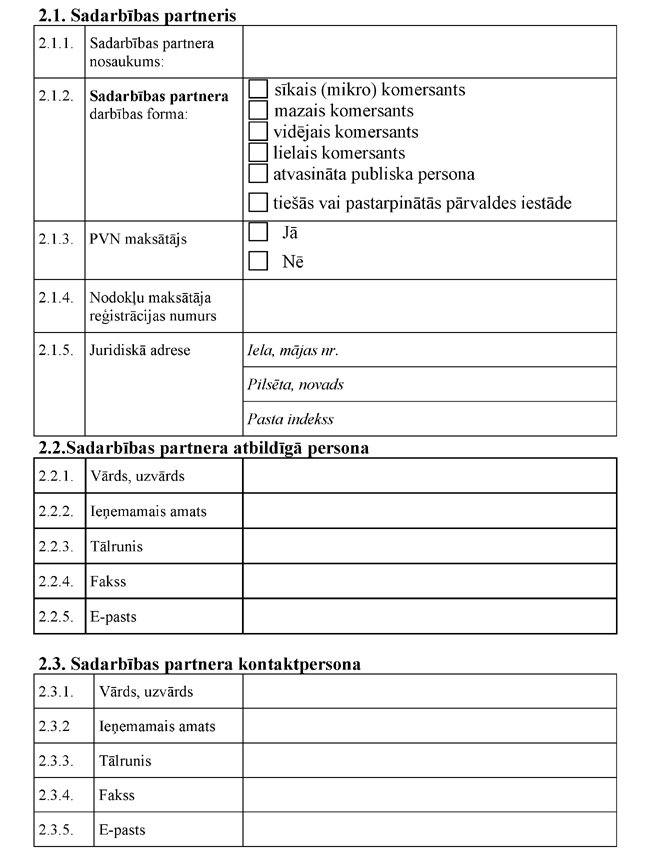 ja projekts paredz sadarbības partnera iesaistīšanos projekta īstenošanā vai finansēšanā, sadarbības partnerim jāiesniedz: |