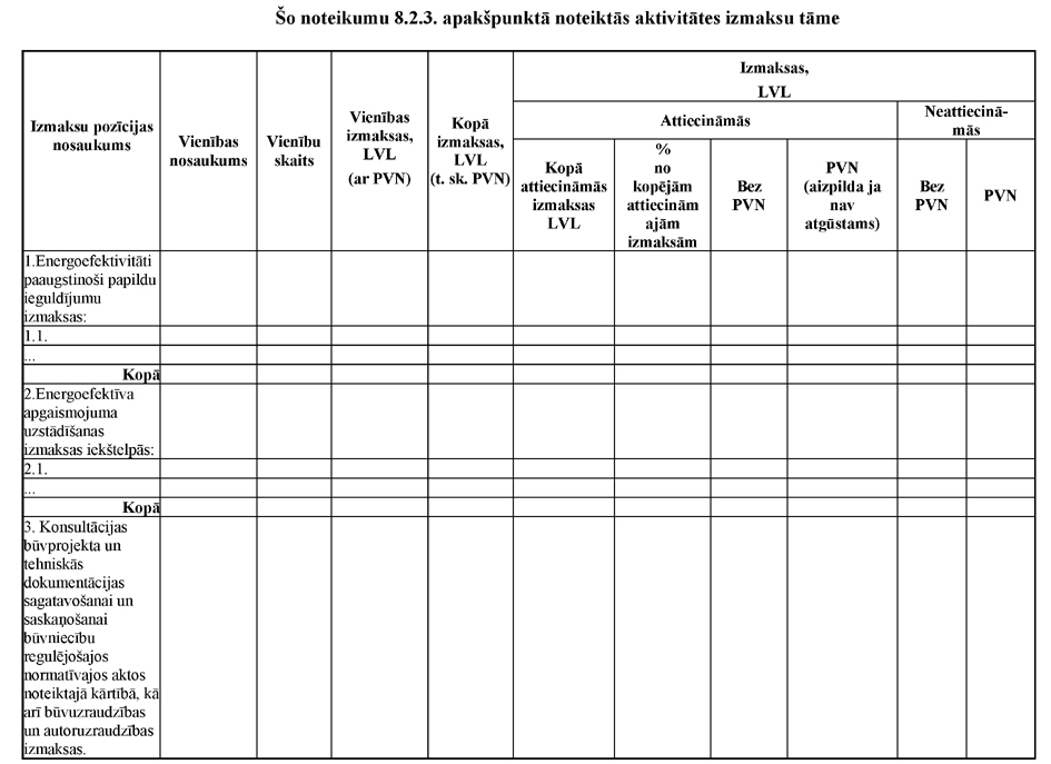 8.2.3. tādu papildu ieguldījumu veikšana vides aizsardzībā, kas ļauj ietaupīt siltumenerģiju vai elektroenerģiju.