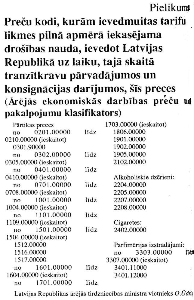 Latvijas Republikas Ārējās tirdzniecības ministrija, 27. 04. 93.