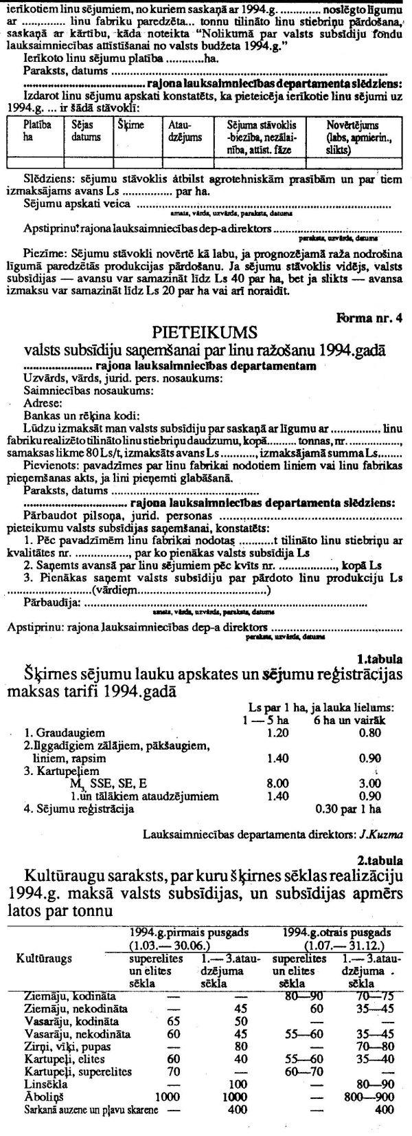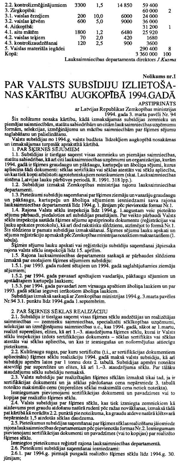 2.1. Nolikumu Nr.1 "Par valsts subsīdiju izlietošanas kārtību augkopībā 1994 gadā".