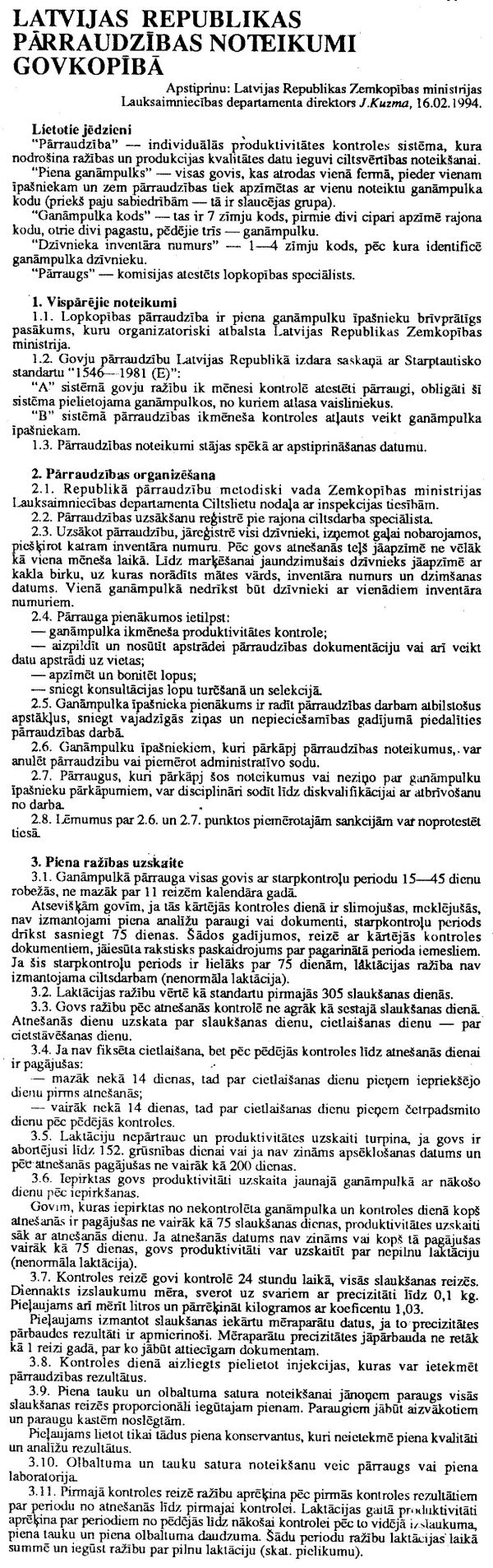 2.2. Nolikumu Nr.2 "Par valsts subsīdiju izlietošanas kārtību lopkopībā 1994.gadā".