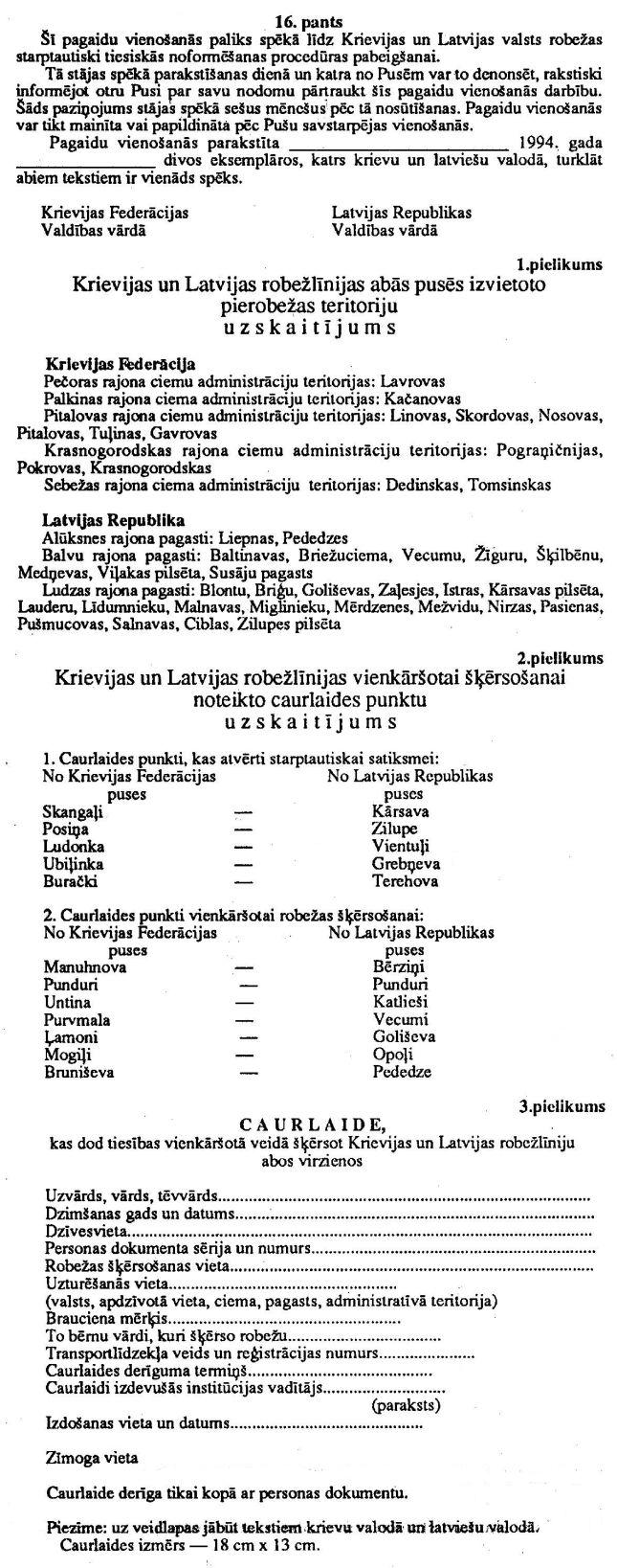 Par Latvijas Republikas Valdības un Krievijas Federācijas Valdības pagaidu vienošanos par vienkāršotu kārtību, kādā pierobežas teritorijas iedzīvotāji šķērso Latvijas un Krievijas robežlīniju