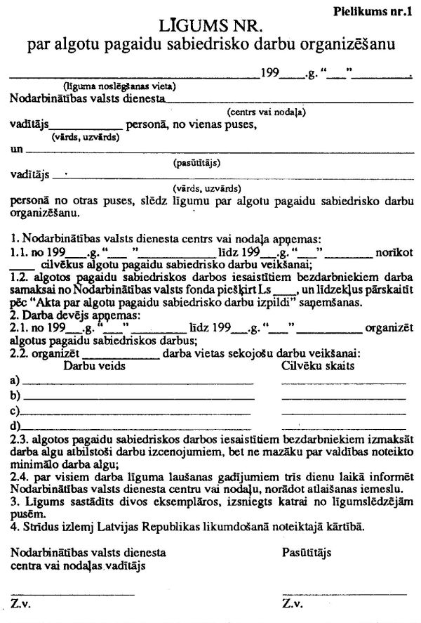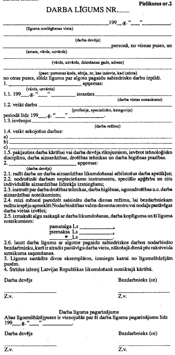 10. Ar bezdarbniekiem, kuri vēlas veikt algotus pagaidu sabiedriskos darbus, darba devējs slēdz darba līgumu uz laiku līdz diviem mēnešiem ar tiesībām to pagarināt (Pielikums Nr.2).