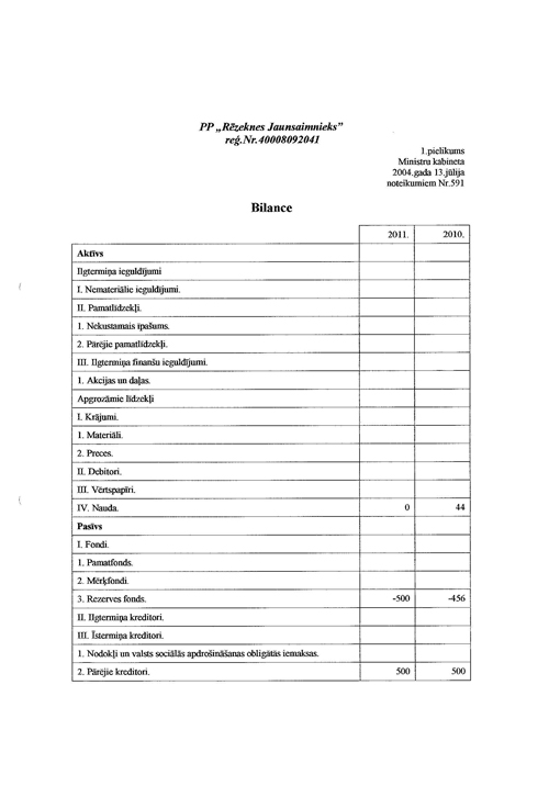 Bilances pārskats 2011.gada 31.augustā (pārskata perioda pēdējais datums)
