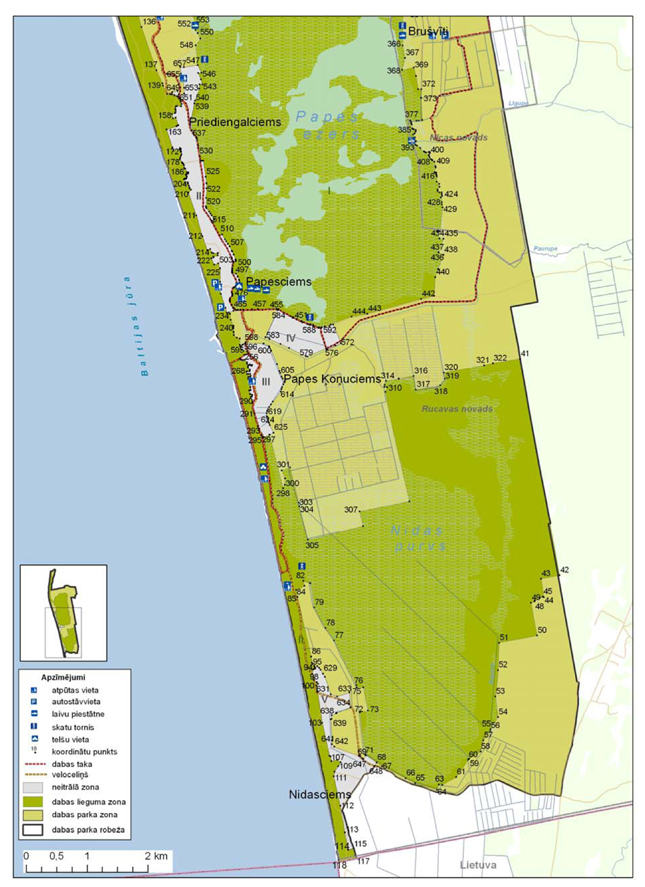 14. Dabas lieguma zona ir izveidota, lai saglabātu piekrastes kāpu, Papes ezera un Nidas purva, pļavu un mežu ekosistēmas kā dabiskās dzīvotnes putnu, zīdītāju un bezmugurkaulnieku sugām, ligzdojošos un caurceļojošos putnus, kā arī dabiskos procesus, kas veido un uztur šīs ekosistēmas.
