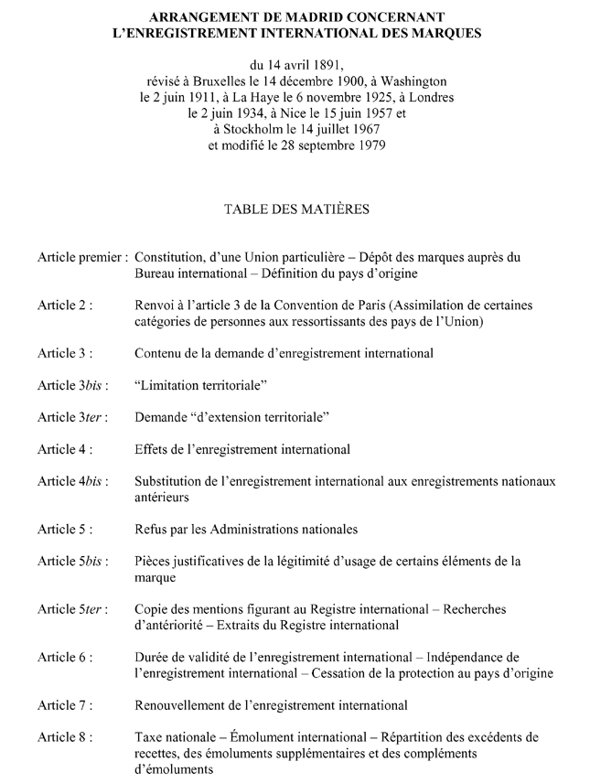 MADRID AGREEMENT CONCERNING THE INTERNATIONAL REGISTRATION OF MARKS