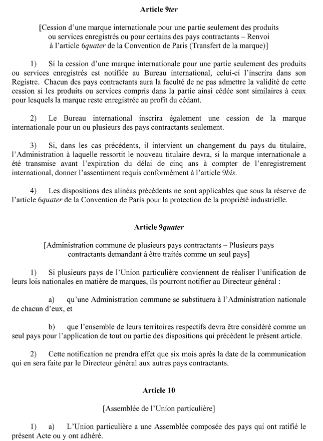Article 9ter: Assignment of International Mark for Part Only of Registered Goods or Services or for Certain Contracting Countries. Reference to Article 6quarter of Paris Convention (Assignment of Mark)